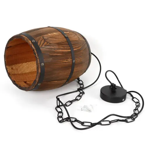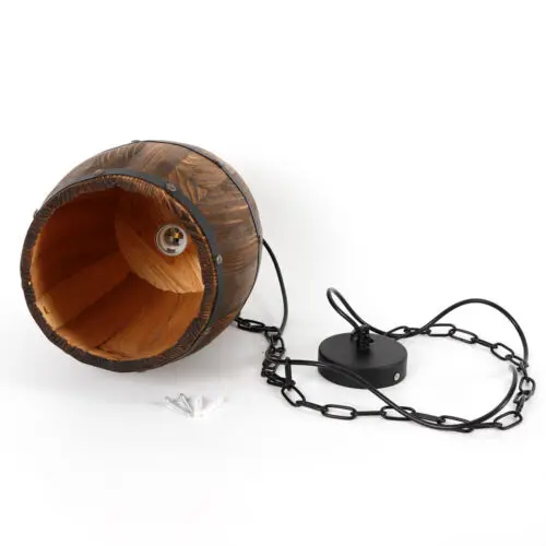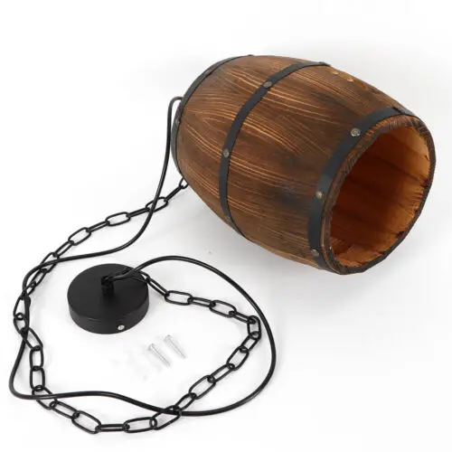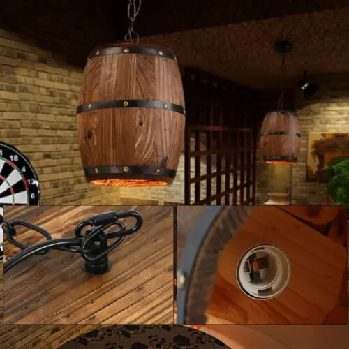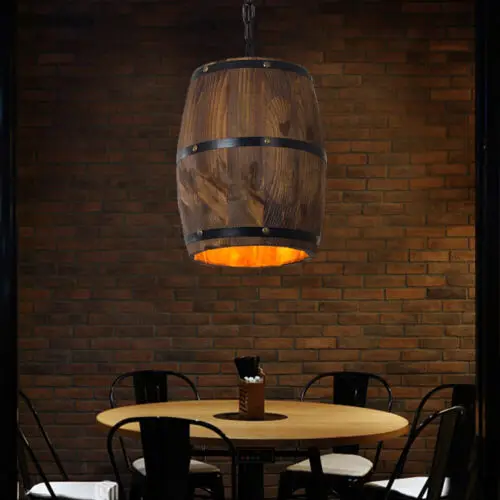 Retro Industrial Wood Wine Barrel Hanging Fixture Ceiling Pendant Lamp bar Light