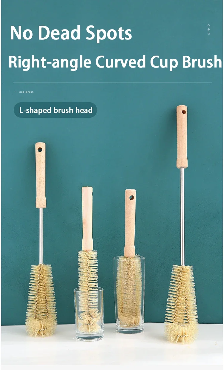 Kitchen Cleaning Tools Drink Bottles Glass Scrubbers Cleaning Brush Wooden Bottle Cleaning Brush with Long Handle